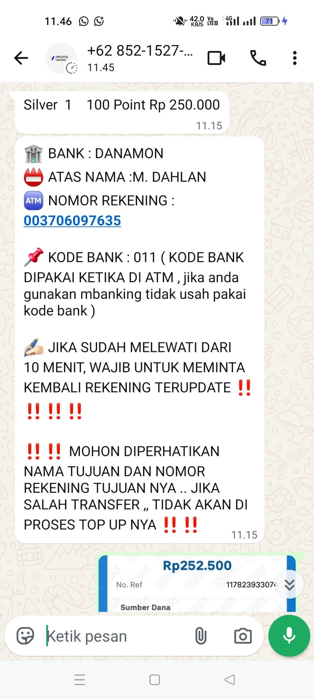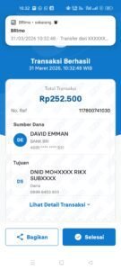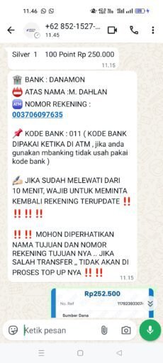 Berdasarkan informasi yang dihimpun dari beberapa pengguna, transaksi deposit disebut diarahkan ke rekening Bank Danamon atas nama M. DHLAN yang diduga berkaitan dengan operasional aplikasi tersebut.