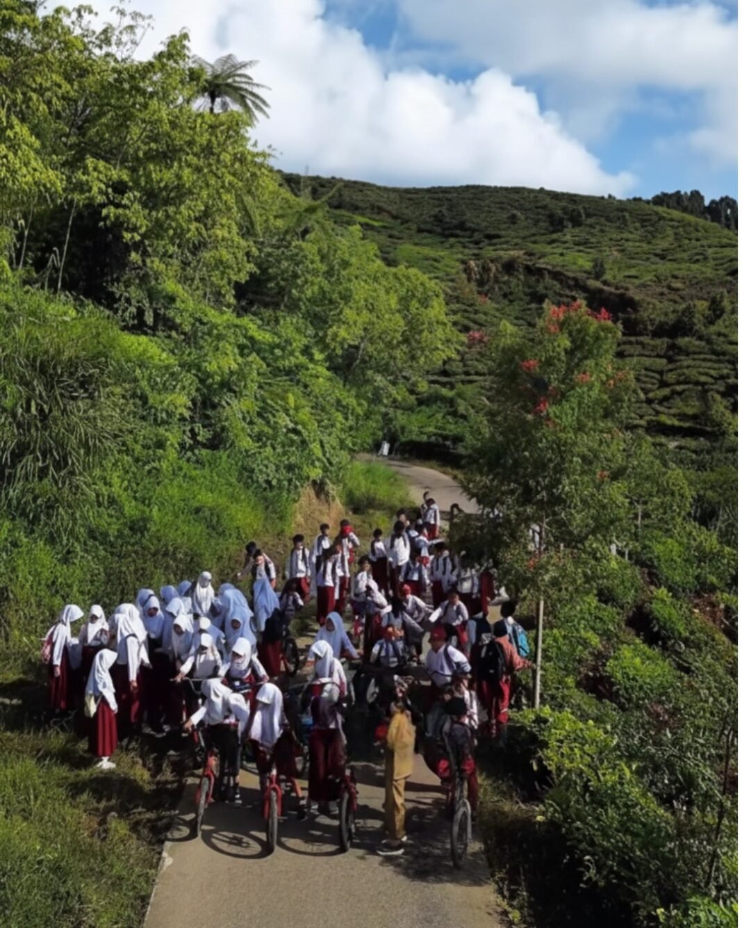 Mediaistana.com || Kabupaten Bogor, Jabar — Suasana pagi di Nirmala, Desa Malasari, Kecamatan Nanggung, Kabupaten Bogor kini terasa berbeda. Kabut tipis masih menyelimuti hamparan kebun teh, namun keheningan yang dulu menyertai pagi perlahan tergantikan oleh tawa riang anak-anak yang berangkat ke sekolah.