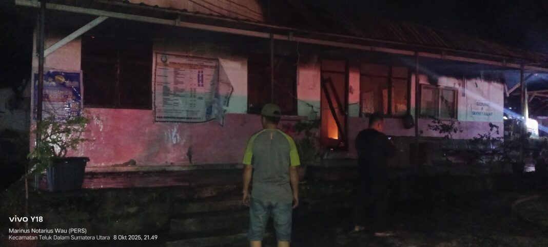 Nias Selatan•||mediaistana.com~Kantor Dinas Pendidikan kabupaten Nias Selatan terbakar akibat Pericikan api dari tiang listrik mengalir di meteran listrik kantor Dinas Pendidikan Nias Selatan hingga terbakarnya kantor Dinas Pendidikan kabupaten Nias Selatan, Rabu (08/10-2025).