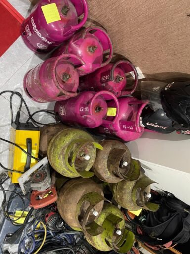 Dalam penangkapan tersebut, polisi turut mengamankan sejumlah barang bukti, di antaranya berbagai jenis tabung gas LPG, kendaraan bermotor, serta sejumlah peralatan seperti mesin las, gergaji, bor, hingga chainsaw yang diduga berkaitan dengan aktivitas pelaku.