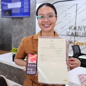 “Menurut saya ini benar-benar pengalaman terbaik. Well, the best experience I have ever had. Prosesnya cepat, saya bisa urus sendiri, dan hari ini bahkan bisa langsung ambil sertipikatnya,” ujar Angelita, pegawai bank yang datang langsung ke Kantah Kabupaten Karawang untuk mengambil dokumennya.