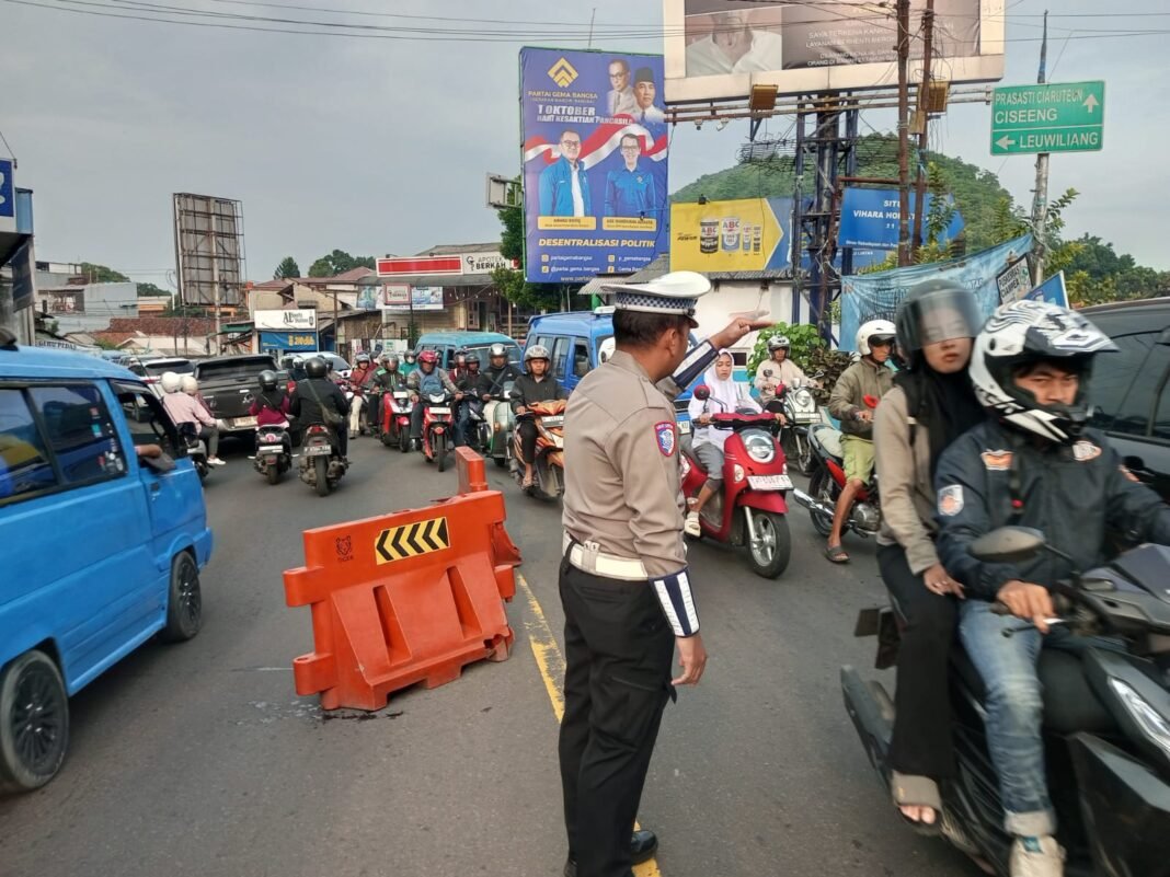 Anggota Polsek Ciampea Polres Bogor Laksanakan Pengaturan Lalu Lintas Pagi Hari