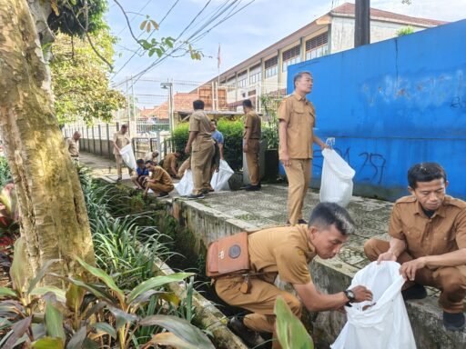 Kegiatan ini dilakukan dengan menyasar area trotoar, taman, hingga saluran air (got) yang berada di sekitar kantor. Para ASN terlihat kompak membawa karung goni untuk mengumpulkan sampah dan kotoran yang ditemukan di lokasi.