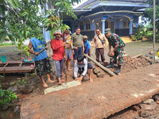 Indramayu – Babinsa Desa Cikedunglor, Serma Solihin, Anggota Koramil 1613/Terisi bersama warga masyarakat Blok Tarikolot melaksanakan kegiatan kerja bakti perbaikan gorong-gorong saluran air. Kegiatan ini dilakukan sebagai langkah antisipasi menghadapi curah hujan tinggi agar aliran air tetap lancar dan tidak menimbulkan genangan. Jum’at, 14/11/2025.