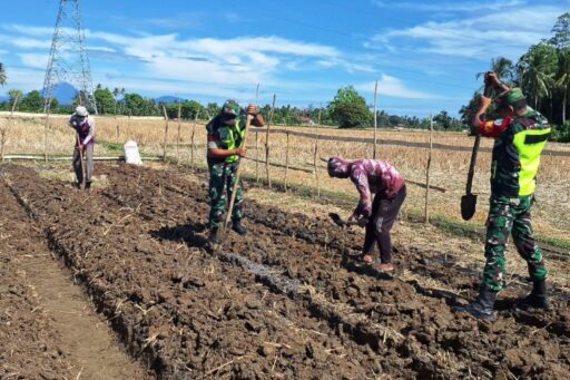 SIGLI – MEDIAISTANA.COM, 12 September 2025 || Babinsa Koramil 05/Indra Jaya, Serda Agus Supriadi dan Koptu Fernando, turut serta membantu para petani dalam mempersiapkan lahan untuk penanaman bawang merah di Desa Putou, wilayah binaan mereka.