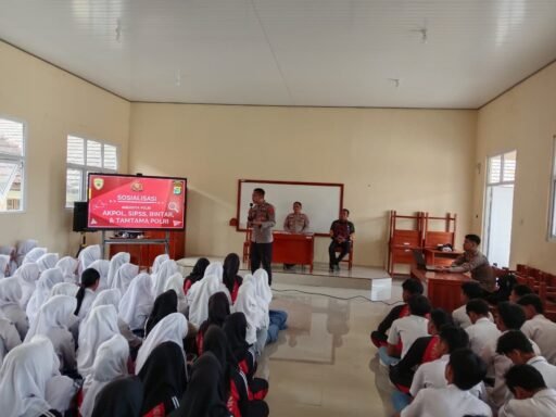 “Sosialisasi Penerimaan Anggota Polri Terpadu T.A 2026 ini disambut hangat oleh para guru pendamping dan siswa/Siswi, Para Peserta Sosialisasi terlihat antusias bertanya tentang proses seleksi Penerimaan secara online tersebut hingga peluang bisa lulus mengikuti pendidikan.” pungkasnya.**