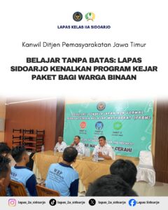 Pemerintah,Sidoarjo||Mediaistana.com — Lapas Kelas IIA Sidoarjo melaksanakan kegiatan Sosialisasi Program Pendidikan Kesetaraan melalui Pusat Kegiatan Belajar Masyarakat (PKBM) Kejar Paket A, B, dan C bagi Warga Binaan Pemasyarakatan (WBP). Kegiatan ini digelar di Aula Bawah Lapas Kelas IIA Sidoarjo dan diikuti secara antusias oleh warga binaan yang belum menamatkan pendidikan formal.(5/11/2025)