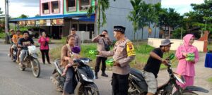 2. Pemberian takjil kepada masyarakat pengguna jalan di depan Mapolsek Teluk Batang.