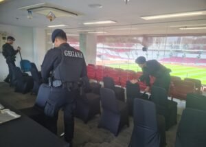 Sterilisasi dilakukan sebagai bagian dari prosedur pengamanan untuk memastikan seluruh area stadion dalam kondisi aman sebelum digunakan dalam pertandingan. Penyisiran dilakukan oleh Unit Jibom bersama K-9 di sejumlah titik, mulai dari ruang ganti pemain, ruang tunggu VVIP, ruang konferensi pers, tribun VVIP, bangku cadangan, hingga area lapangan dan fasilitas umum.