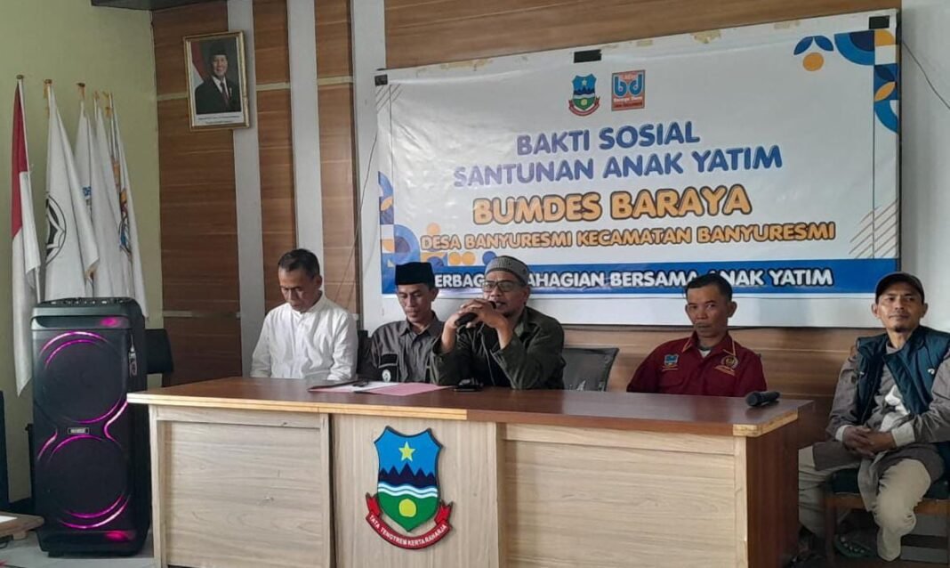 Lanjut Ahmad Hidayat mejelaskan, sesuai hasil musyawarah pengurus BUMDes Baraya Desa Banyuresmi, yang diketuai oleh Bapak Agus Yusuf, S.Ag, dana sosial tahun 2026 digunakan untuk bakti sosial menyantuni anak Yatim, saat menjelang hari Raya Idul Fitri 1447 H, dengan menyerap anggaran Rp. (16 Juta). tuturnya.