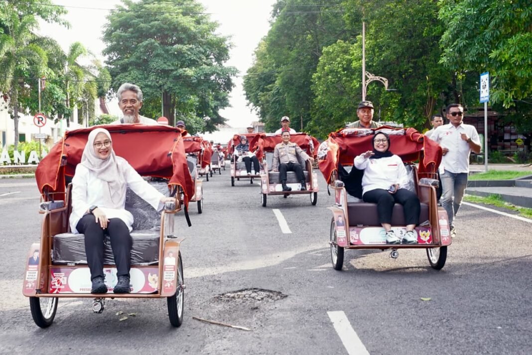 Bupati Ipuk Serahkan 200 Becak Listrik Bantuan Presiden ke Pengemudi Becak Lansia Banyuwangi