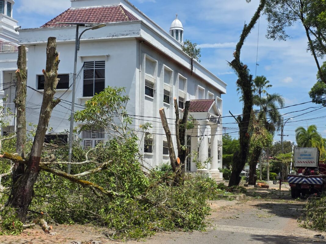 LABUHANBATU – Bupati Labuhanbatu, Hj.Maya Hasmita memberi perintah kepada beberapa instansi untuk melaksanakan rutinitas pemangkasan pohon, salah satu sekitar lingkungan pemerintah kabupaten labuhanbatu.