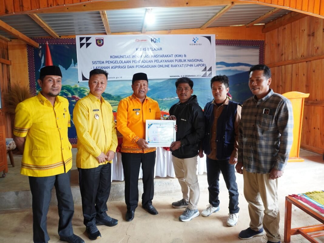 Hal ini disampaikan Bupati dihadapan peserta Kelas Belajar Komunitas Informasi Masyarakat (KIM) se-Kabupaten Mamasa dan Peserta Pelatihan Aplikasi SP4Lapor di aula Edelweis Tondok Bakaru, Kamis 4/12/2025.