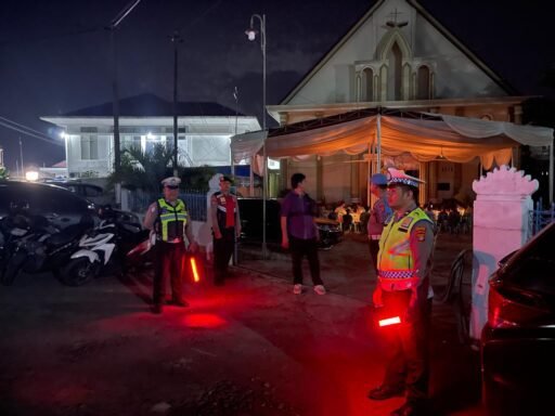 Kegiatan pengamanan tersebut dimulai sejak pukul 18.00 WIB hingga selesai, dengan melibatkan personel jajaran Polres Lampung Utara guna memastikan kelancaran arus lalu lintas serta memberikan rasa aman kepada jemaat yang melaksanakan ibadah.