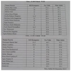 Ngawine – Pemerintah Desa Sine, Kecamatan Sine, Kabupaten Ngawi, melaksanakan seleksi tulis dan komputer calon perangkat desa untuk dua formasi jabatan, yaitu Kepala Urusan Tata Usaha dan Umum serta Kepala Seksi Pemerintahan, pada Sabtu (06/12/2025).