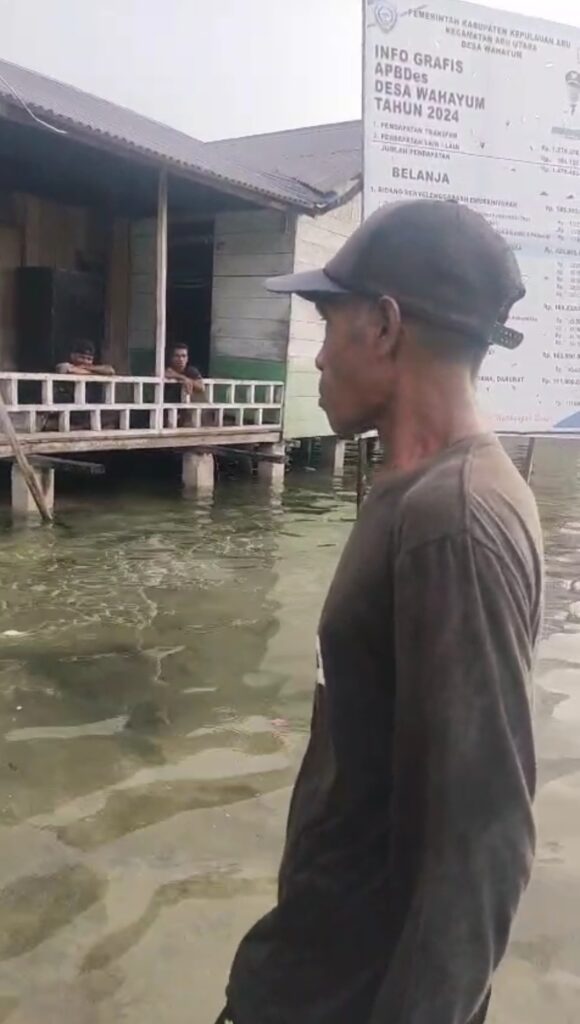 Dobo, Maluku – Mediaistana.com – Air pasang yang terjadi selama tiga hari mengakibatkan satu desa di Kecamatan Aru Utara Marlasi, Kabupaten Kepulauan Aru, Provinsi Maluku, terendam. Ratusan rumah di Desa Wahayum, yang hanya berjarak sekitar 3 meter dari bibir pantai, terendam air pasang pada sore hari Jumat (4/4/25) mulai pukul 2 sore hingga malam hari.