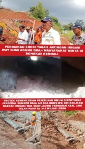 Sementara dikesempatan yang sama Mitah selaku pengawas lapangan dari kontraktor PT Bajasa Menunggal Sejati (BMS), saat di konfirmasi membenarkan atas erosi tanah jaringan irigasi way bumi agung.