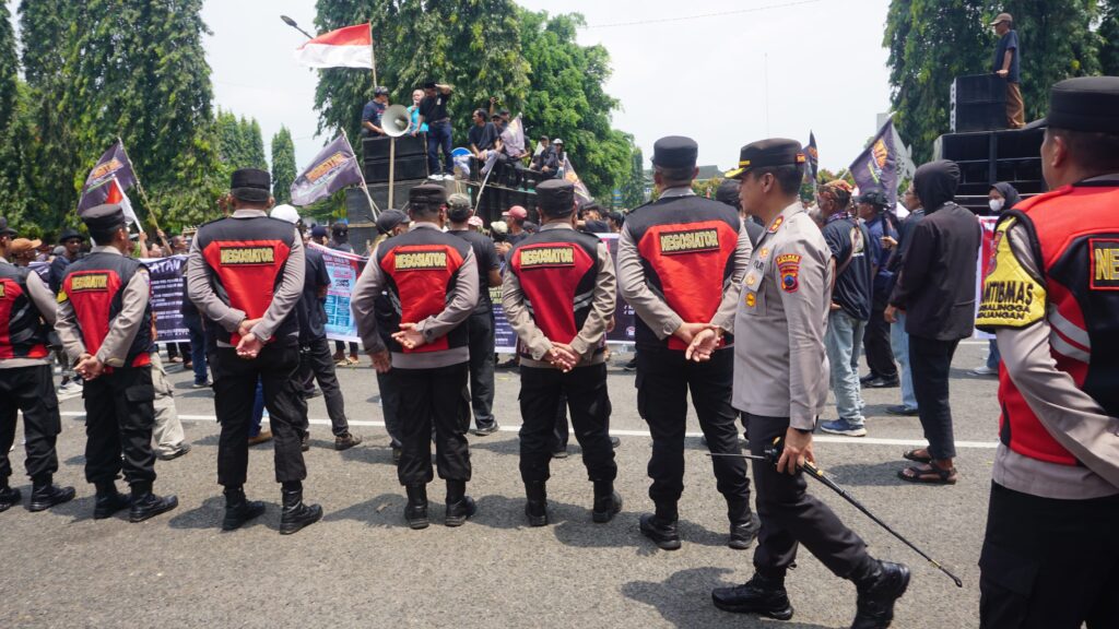 Pengamanan unjuk rasa juga mendapatkan asistensi dari Karoops Polda Jateng Kombes Basya Radyananda. Karoops hadir langsung memantau jalannya pengamanan unjuk rasa. (**)