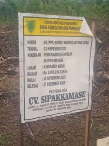 Proyek Pengembangan Kawasan Buyung – Buyung di jalan Tani Kampung Buyung – Buyung Kecamatan Tabalar tidak dikerjakan lagi karena telah di hentikan oleh pemilik lahan AW.