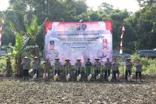 Serang – Dalam rangka mendukung program ketahanan pangan, Polda Banten melalui Ditsamapta Polda Banten melaksanakan kegiatan penanaman jagung kuartal II, yang bertempat di Kampung Ciakar, Desa Sukarame, Kecamatan Cikeusal, Kabupaten Serang pada Selasa (14/04).