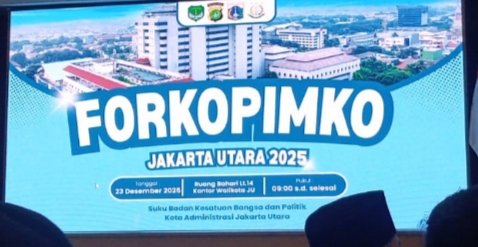 Mediaistana.com | Jakarta Utara — Forum Koordinasi Pimpinan Kota (Forkopimko) Jakarta Utara menggelar kegiatan penguatan sinergi jelang pengamanan Natal dan Tahun Baru (Nataru) pada Selasa, 23 Desember 2025, bertempat di Ruang Bahari, Lantai 14, Kantor Wali Kota Administrasi Jakarta Utara. Kegiatan ini diselenggarakan oleh Suku Badan Kesatuan Bangsa dan Politik (Kesbangpol) Kota Administrasi Jakarta Utara dan diikuti sekitar 100 peserta.