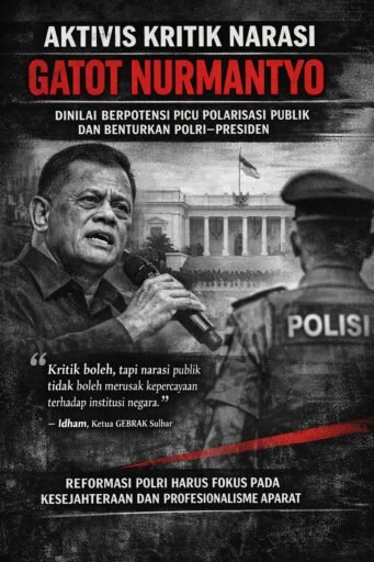 JAKARTA media Istana.com  – Pernyataan mantan Panglima TNI Jenderal (Purn) Gatot Nurmantyo yang mengkritik Kapolri Jenderal Listyo Sigit Prabowo mendapat tanggapan dari kalangan aktivis. Ketua Gerakan Barisan Rakyat Anti Korupsi (GEBRAK) Sulawesi Barat, Idham, menilai pernyataan tersebut berpotensi menimbulkan polarisasi persepsi publik terhadap institusi negara dan relasi antar-lembaga.