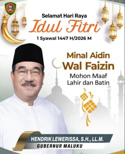 Hari kemenangan kembali hadir, membawa cahaya kedamaian dan harapan baru bagi seluruh umat Muslim. Dalam suasana yang penuh berkah ini, Gubernur Maluku, Hendrik Lewerissa, baik sebagai pribadi maupun atas nama Pemerintah Provinsi Maluku, menyampaikan ucapan selamat Hari Raya Idul Fitri 1447 Hijriah kepada seluruh umat Islam, khususnya Muslim di tanah Maluku tercinta.