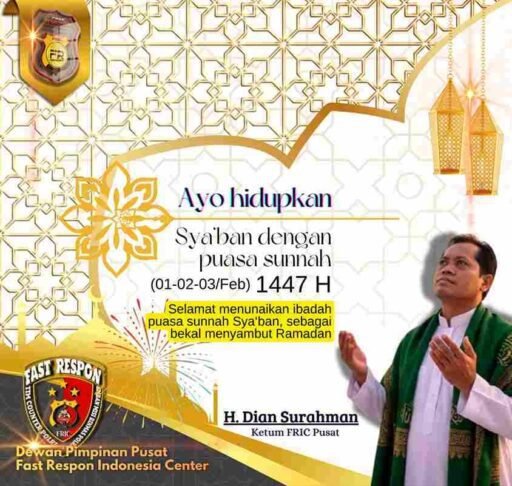 H. Dian Surahman, Ketua Umum DPP Fast Respon Indonesia Center (FRIC), mengajak masyarakat muslim untuk menghidupkan bulan Sya’ban dengan berpuasa sunnah. Menurutnya, puasa sunnah Sya’ban merupakan salah satu cara untuk meningkatkan keimanan dan ketaqwaan kita kepada Allah SWT.