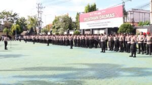 MEDIAISTANA.COM |BANYUWANGI, Menjelang peringatan Hari Buruh Internasional (May Day) pada 1 Mei 2026, Polresta Banyuwangi menggelar simulasi Sistem Pengamanan Markas Komando (Sispam Mako) dan latihan Pengendalian Massa (Dalmas), Selasa (28/4/2026).