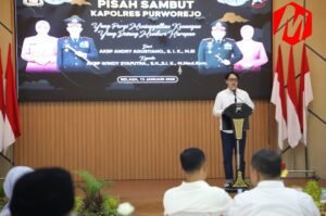 PURWOREJO | Mediaistana,com – Wakil Bupati Purworejo Dion Agasi Setiabudi SIKom MSi didampingi Ketua Tim Penggerak (TP) PKK Raja Thifal Mazaya Izzati SIKom hadir pada acara Pisah Sambut Kapolres Purworejo yang berlangsung di Auditorium Polres Purworejo, Selasa (13/1/2026).