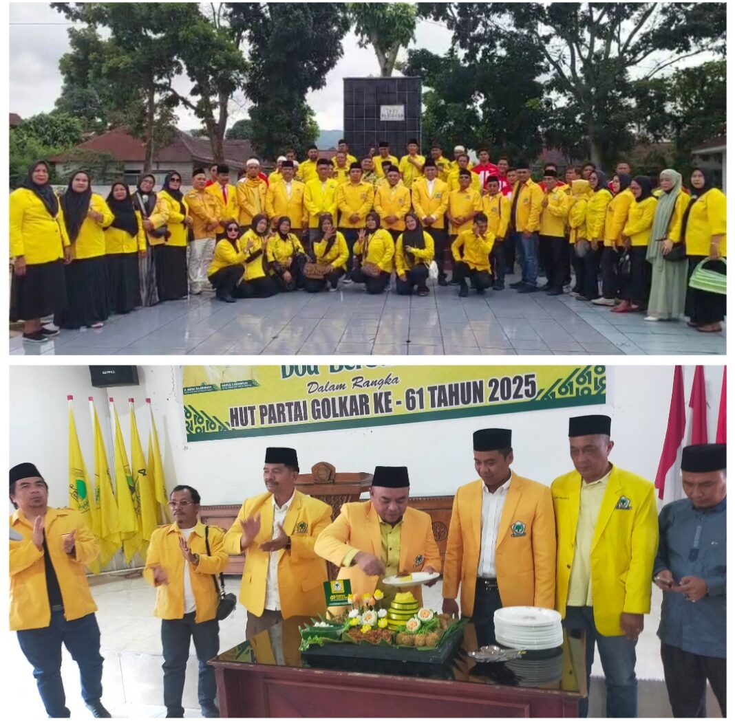Kita mengucapkan terima kasih kepada pengurus telah melaksanakan kegiatan memperingati HUT Partai Golkar ke-61, kita berbahagia dalam memperingati HUT Partai Golkar, ucap Andi.