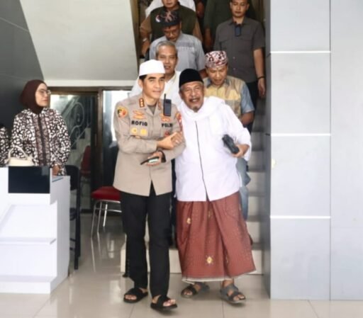 BANYUWANGI, 23 januari 2026 – Momen penuh keteladanan dan nilai adab tersaji di Gedung Mapolresta Banyuwangi, Jumat siang (23/01/2026). Kapolresta Banyuwangi, Kombes Pol Dr. Rofiq Ripto Himawan, S.I.K., S.H., M.H., tampak menuntun dengan penuh hormat ulama sepuh, KH. Mohamad Ikrom Hasan, saat menuruni tangga dari lantai dua Mapolresta usai gelaran audiensi bersama Rumah Kebangsaan (RK) Banyuwangi.