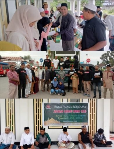 Setelah kegiatan berbagi takjil, rangkaian acara dilanjutkan dengan buka puasa bersama serta penyerahan santunan kepada anak-anak yatim di Masjid Al Munawarah Pilar.