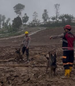 Bandung Jabar – Upaya pencarian korban bencana tanah longsor di Desa Pasirlangu, Kecamatan Cisarua, Kabupaten Bandung Barat terus dilakukan secara intensif. Untuk mempercepat proses evakuasi, tim K9 Ditsamapta Polda Jawa Barat turut diterjunkan ke lokasi bencana, Selasa (27/1/2026).