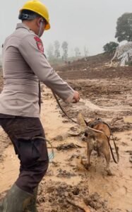 Anjing pelacak K9 yang didampingi oleh personel terlatih melakukan penyisiran di area longsoran yang sulit dijangkau alat berat. Kehadiran K9 sangat membantu tim SAR gabungan dalam mendeteksi keberadaan korban yang diduga masih tertimbun material tanah, batu, dan puing-puing.