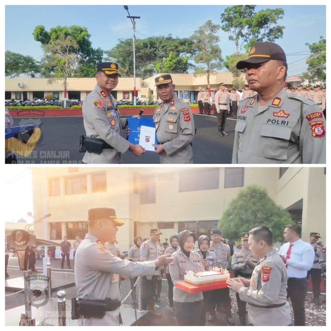 Pada kesempatan yang sama, suasana apel juga diwarnai dengan momen penuh kehangatan melalui pemberian kejutan ulang tahun kepada Wakapolres Cianjur, KOMPOL Mohamad Ardi Wibowo. Kejutan tersebut menjadi simbol kebersamaan dan kekeluargaan di lingkungan Polres Cianjur.