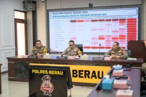 Polres Berau – Kepolisian Resor Berau memaparkan hasil evaluasi kinerja serta perkembangan situasi keamanan dan ketertiban masyarakat (kamtibmas) selama periode Januari hingga Desember 2025. Secara umum, kondisi kamtibmas menunjukkan tren yang lebih baik dibandingkan tahun sebelumnya, meskipun sejumlah kasus masih memerlukan perhatian khusus.
