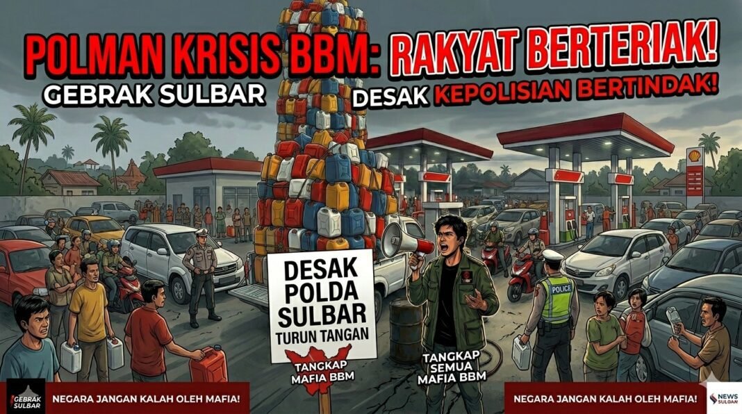 SULBAR Media Istana.com – Gerakan Barisan Rakyat Anti Korupsi (GEBRAK) Sulawesi Barat melayangkan protes keras terkait krisis kelangkaan Bahan Bakar Minyak (BBM) yang melanda Kabupaten Polewali Mandar (Polman). GEBRAK menduga kuat adanya praktik “main mata” sistematis antara mafia penimbun, oknum SPBU, hingga dugaan keterlibatan oknum aparat penegak hukum.