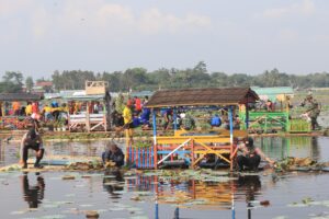 Para peserta kemudian bergotong royong membersihkan area wisata, mulai dari tepian danau, jalur wisata, hingga fasilitas umum yang ada di sekitar Situ Bagendit.