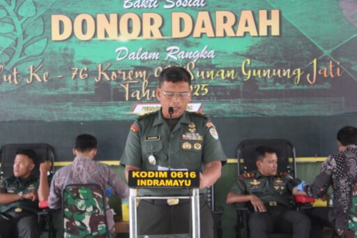 Dalam rangka memperingati Hari Ulang Tahun ke-76 Korem 063/Sunan Gunung Jati Tahun 2025, Kodim 0616/Indramayu melaksanakan kegiatan Bakti Sosial Donor Darah yang berlangsung di Joglo Makodim 0616/Indramayu, Jl. Gatot Subroto No. 01 Kelurahan Pekandangan Jaya, Kecamatan/Kabupaten Indramayu.