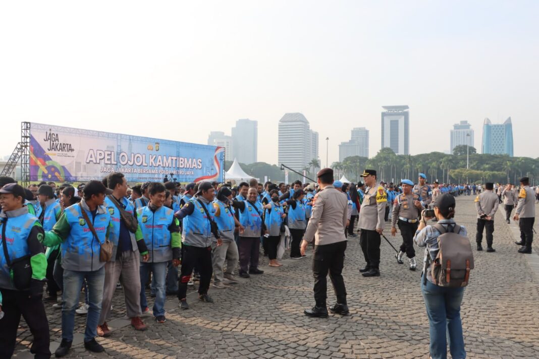 “Kami memastikan bahwa seluruh peserta Ojol Kamtibmas yang berangkat telah mengenakan helm, kendaranaan layak pakai, surat kendaraan dan sim serta atribut aplikator sesuai dengan ketentuan Peraturan Gubernur DKI Jakarta, mengingat Monas adalah kawasan tertib atribut,” jelas AKBP Martuasah.