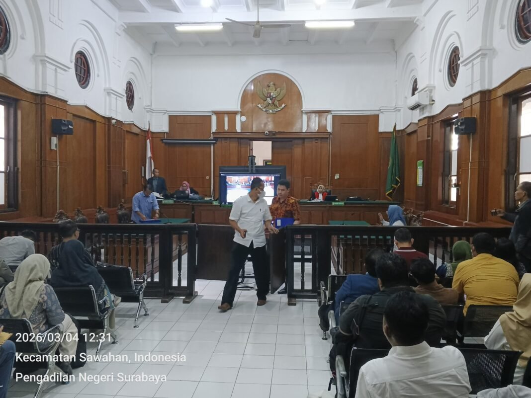 Sidang yang digelar di ruang Cakra Pengadilan Negeri Surabaya pada Rabu (4/3/2026) kembali batal dilaksanakan setelah tergugat III dari pihak Kelurahan Putat Gede tidak hadir tanpa penjelasan yang jelas kepada majelis hakim.