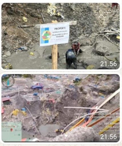 Di lokasi tambang ilegal, terpasang patok bertuliskan “Properti Koperasi Produsen Marahidi Karya Mandiri”. Pemasangan patok ini justru memperkuat dugaan bahwa koperasi tersebut secara sadar memaksakan diri beroperasi, meski belum memenuhi persyaratan administratif dan perizinan yang diwajibkan UU.