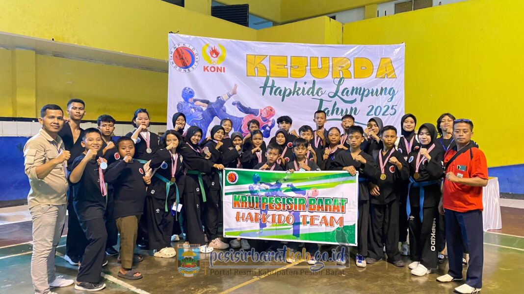 PESISIR BARAT – Kepala Dinas Komunikasi, Informatika, Statistik dan Persandian (Diskominfotiksan), Suryadi, S.IP., M.M., melalui Ketua Hapkido Pesisir Barat, Tedi Zadmiko, S.K.M., S.H., M.M. setelah dikonfirmasi pada hari Minggu (11/5/2025) menyampaikan bahwa, Keikutsertaan 26 atlet Hapkido Kabupaten Pesisir Barat (Pesibar) dalam Kejuaraan Daerah (Kejurda) Hapkido Provinsi Lampung Tahun 2025 berhasil menorehkan prestasi membanggakan. Selama dua hari pelaksaan kejuaraan tersebut para atlet Pesibar berhasil mengumpulkan total 21 medali.
