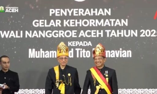 Penganugerahan untuk mantan Kepala Kepolisian Republik Indonesia periode. 2016-2019 itu digelar di Pendopo Wali Nanggroe, Darul Imarah, Aceh Besar, Rabu (12/11/2025).