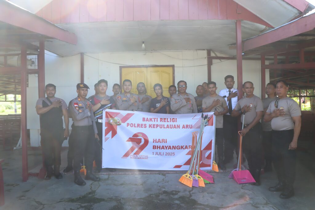 Dobo, Mediaistana.com – Dalam rangka memperingati HUT Bhayangkara ke-79, Polres Kepulauan Aru, Polda Maluku, pada Jumat, 13 Juni 2025, melaksanakan kerja bakti religi di sejumlah tempat ibadah di Kota Dobo.