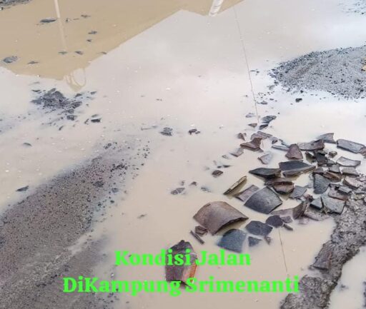 Setiap Hari , Apalagi dimusim hujan begini , kami melalui Jalan yang berlobang serta licin . Dan Sebagian besar berlokasi didalam kampung sampai ke Tugu selamat Datang kampung Srimenanti. Dan terlihat jelas kondisinya sangat parah, bahkan bandan jalan yang Hancur sangat berpotensi terjadinya kecelakaan.Imbuh Fikri.