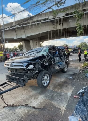 Berdasarkan pantauan di lokasi, kendaraan tersebut mengalami kerusakan parah di bagian depan dan samping, diduga akibat benturan keras saat insiden terjadi.