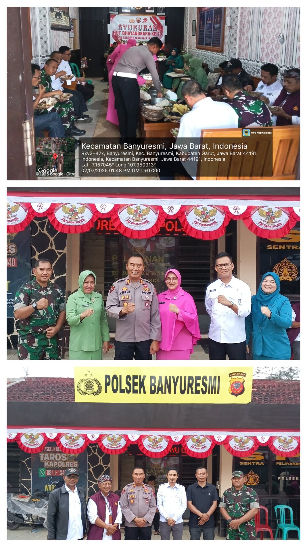 Garut – Momentum HUT Bhayangkara Ke-79, Forkompimcam Banyuresmi Bersama APDESI Gelar Tasyakuran Kenaikan Pangkat Anggota Polisi. Bertempat di Mapolsek Banyuresmi, Kecamatan Banyuresmi, Kabupaten Garut Jawa Barat. Rabu, 02 Juli 2025.