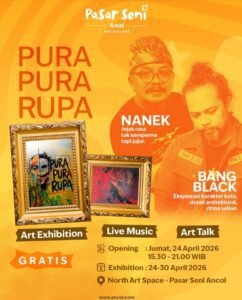 Di sisi lain, pameran “Pura Pura Rupa” menghadirkan eksplorasi visual dari dua seniman, Nanek dan Bang Black, Bertempat di North Art Space, karya-karya yang dipamerkan menawarkan pendekatan artistik yang reflektif sekaligus berkarakter kuat,Tidak hanya sekadar pameran, rangkaian acara ini juga diisi dengan diskusi seni dan pertunjukan musik yang terbuka untuk publik hingga 30 April 2026.